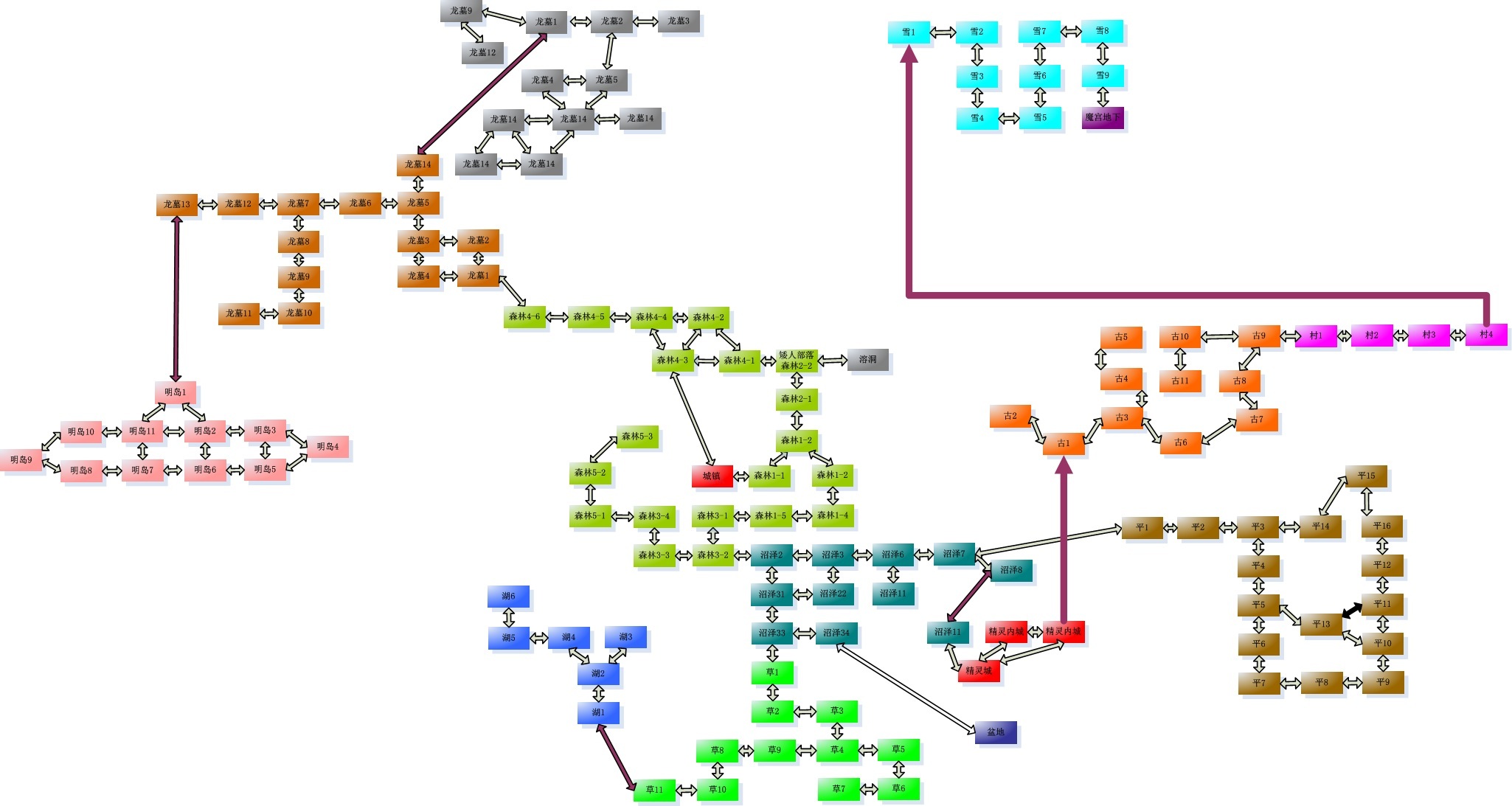 以下為各地圖傳送點位置,座標格式為 (X, Y)。